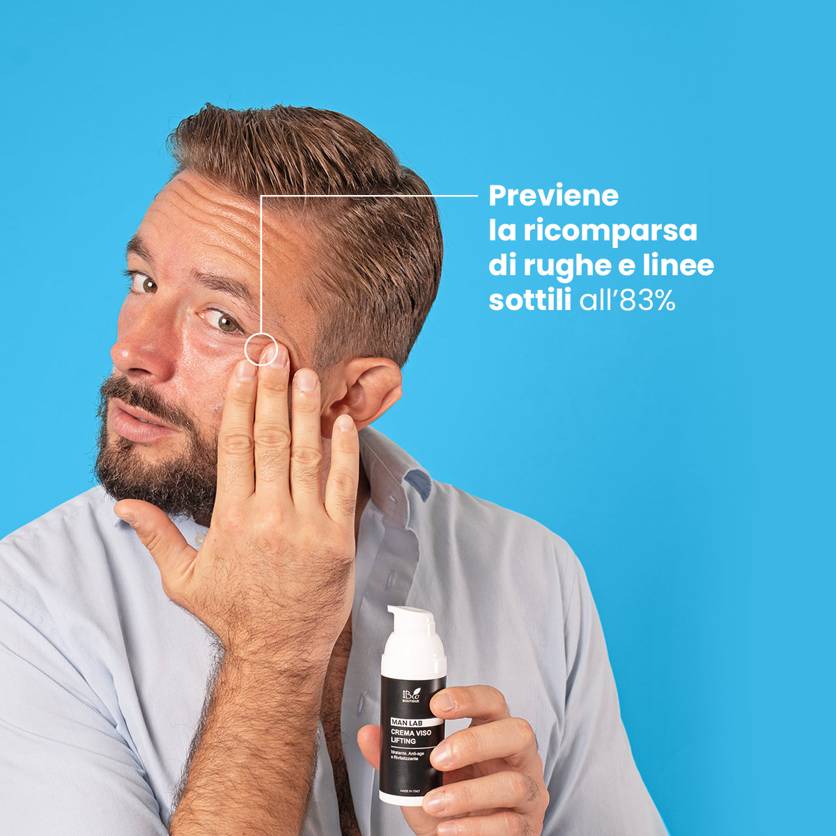 Man Lab - Crema Viso Lifting, è la crema viso perfetta per la pelle maschile, ad azione idratante, anti-age e rivitalizzante, per un viso fresco, sempre giovane e privo di imperfezioni.