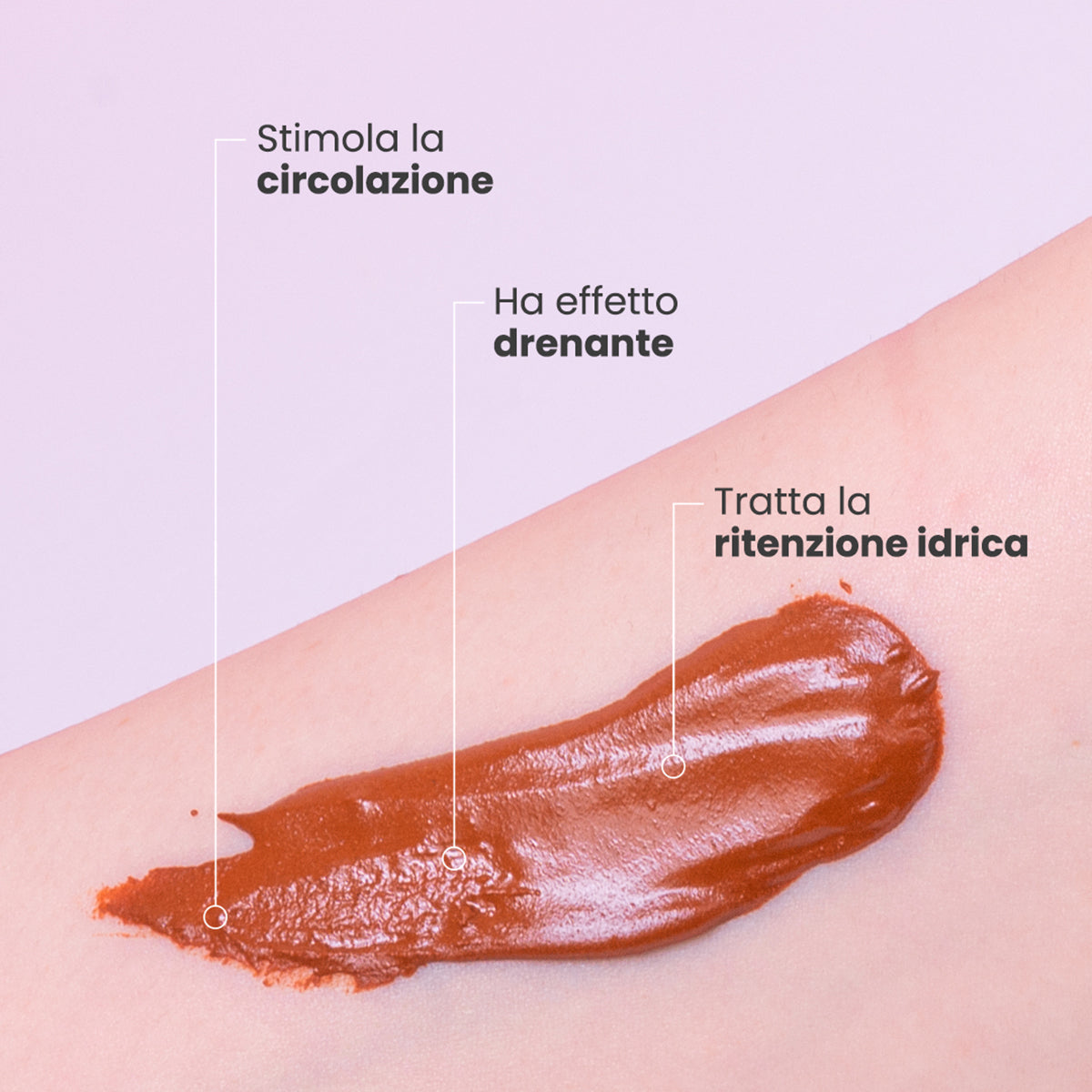 Svolge un’azione drenante, stimola la microcircolazione, ed è ideale per contrastare la ritenzione idrica, minimizzando e trattando i cuscinetti.
