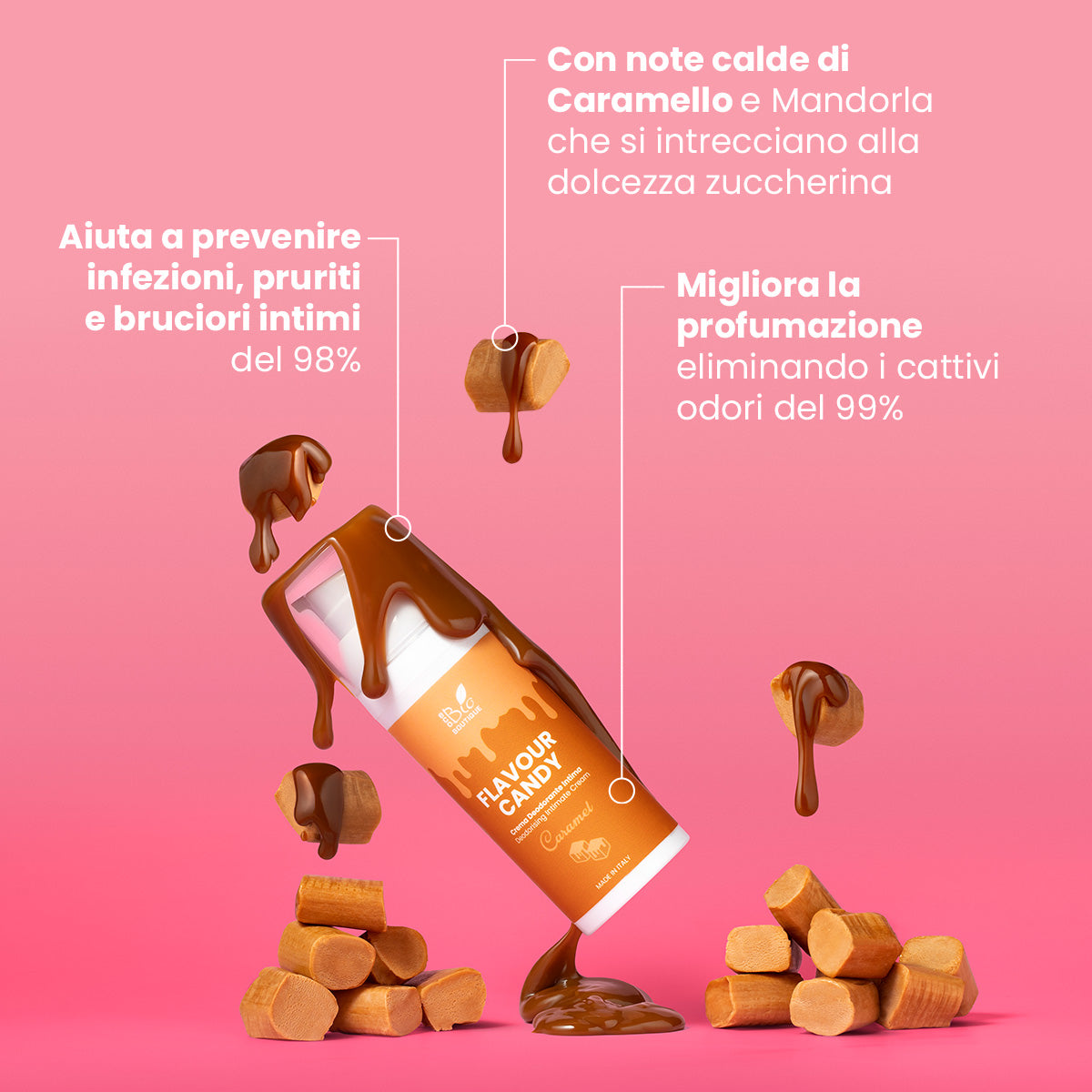Flavour Candy non è solo una coccola profumata, ma un vero trattamento che protegge la zona intima, contrastando fastidi, irritazioni, bruciori e secchezza.