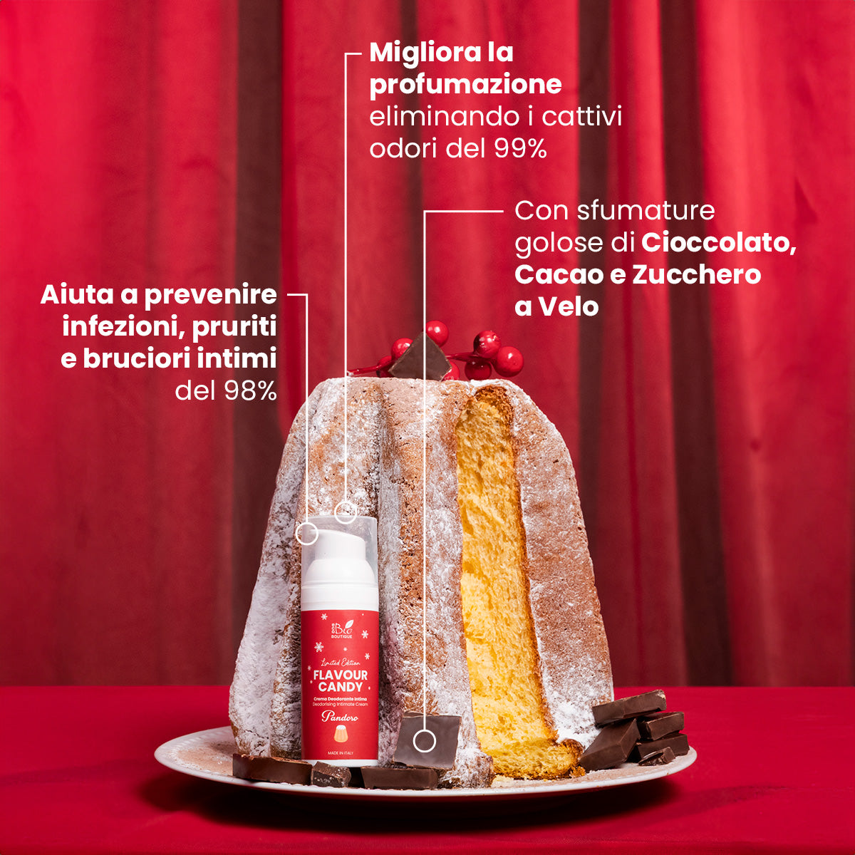 La profumazione Pandoro è disponibile in Edizione Limitata, esclusivamente durante il periodo delle feste.