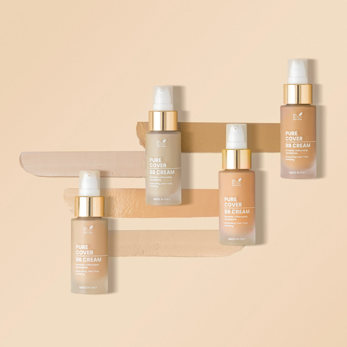 Pure Cover - BB Cream è stata formulata in 4 varianti di colore, ideali per adattarsi all’incarnato grazie a degli innovativi pigmenti, che una volta applicati si fondono perfettamente con il tono della pelle.