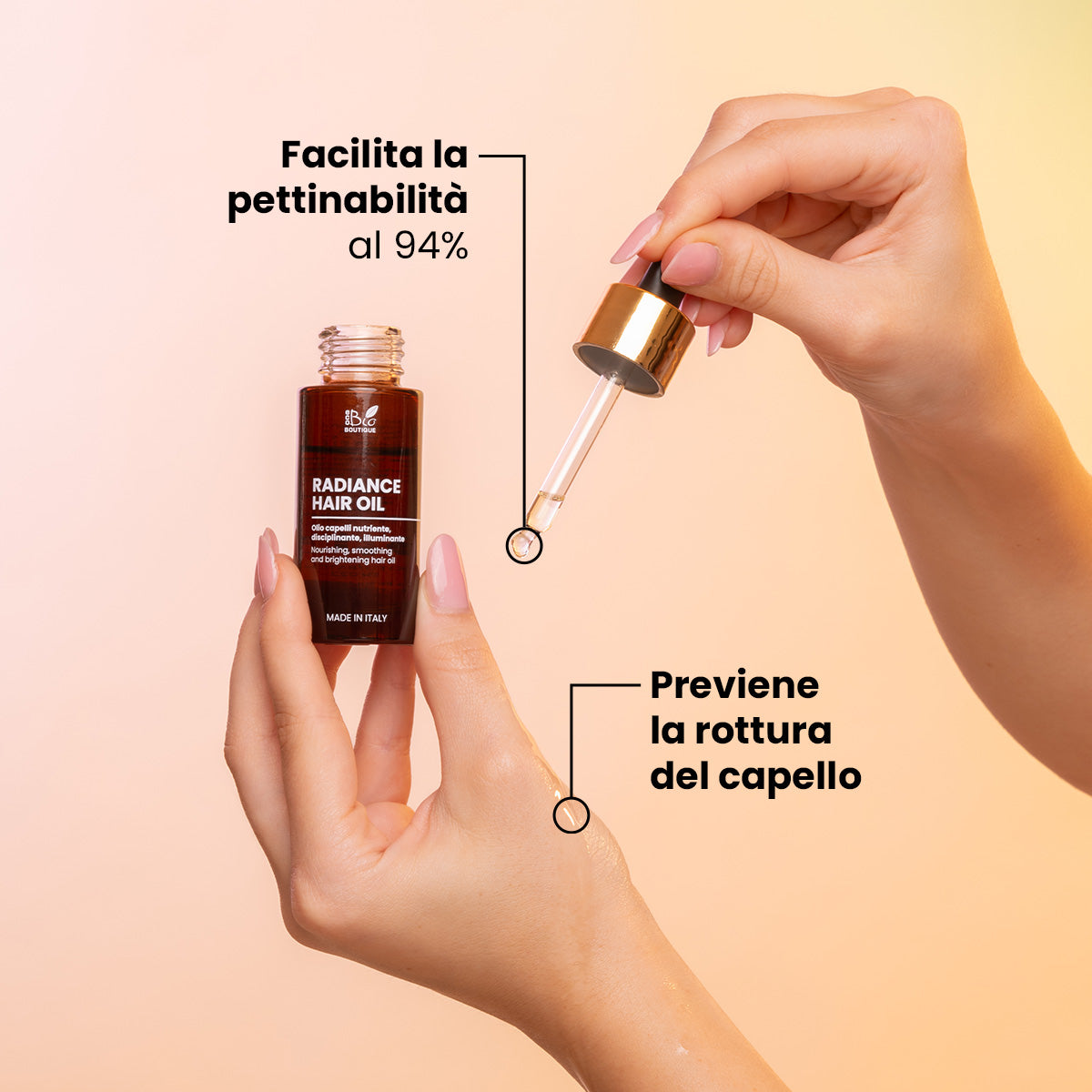 Regala ai tuoi capelli pura luce e nutrimento con Radiance Hair Oil, per una chioma sublime ogni giorno!