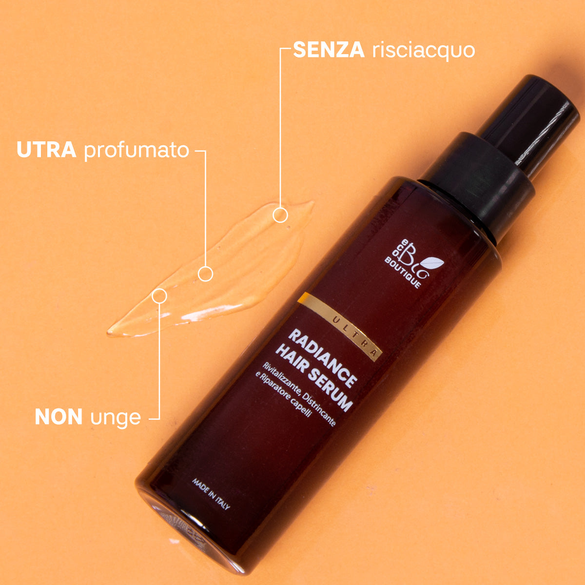 Radiance Hair Serum è un siero capelli a base di cheratina, senza risciacquo che non unge, ad azione Ristrutturante, Rivitalizzante e Districante.