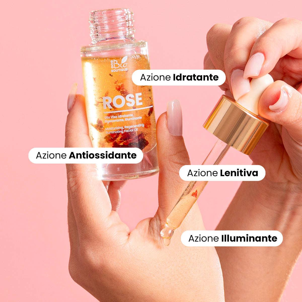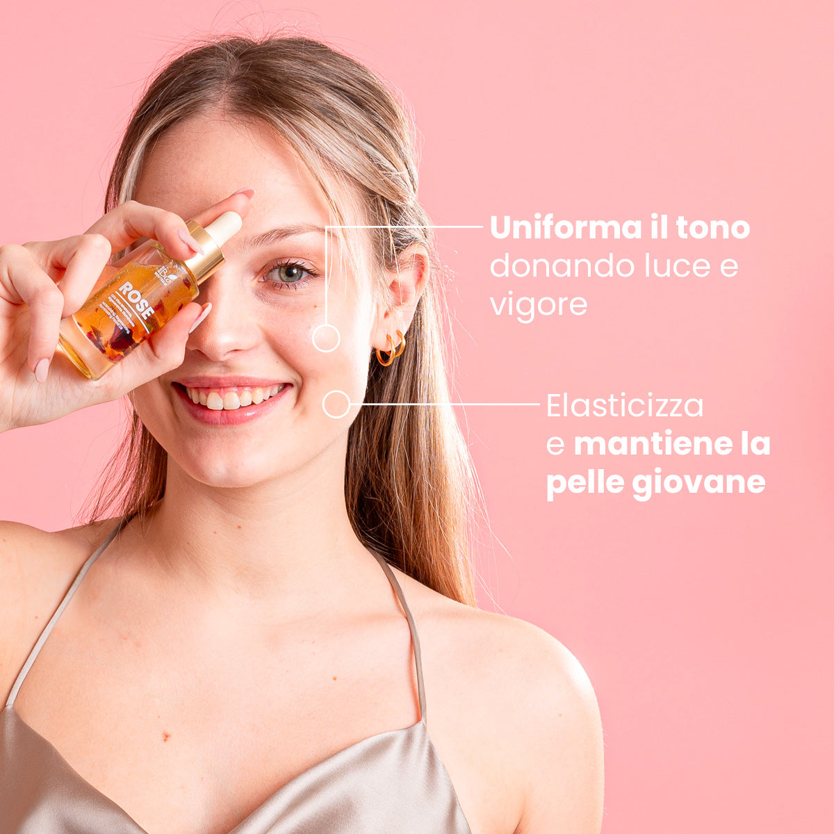 Rose è l’olio viso 100% naturale che nutre, rigenera e idrata la pelle.