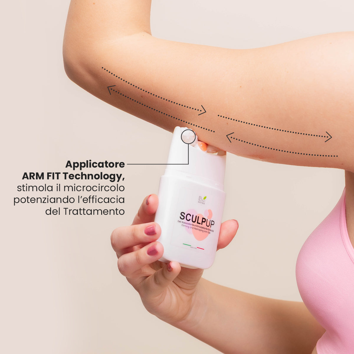 SculpUp tonifica, rassoda e modella naturalmente le braccia, con risultati visibili già dalle prime applicazioni.