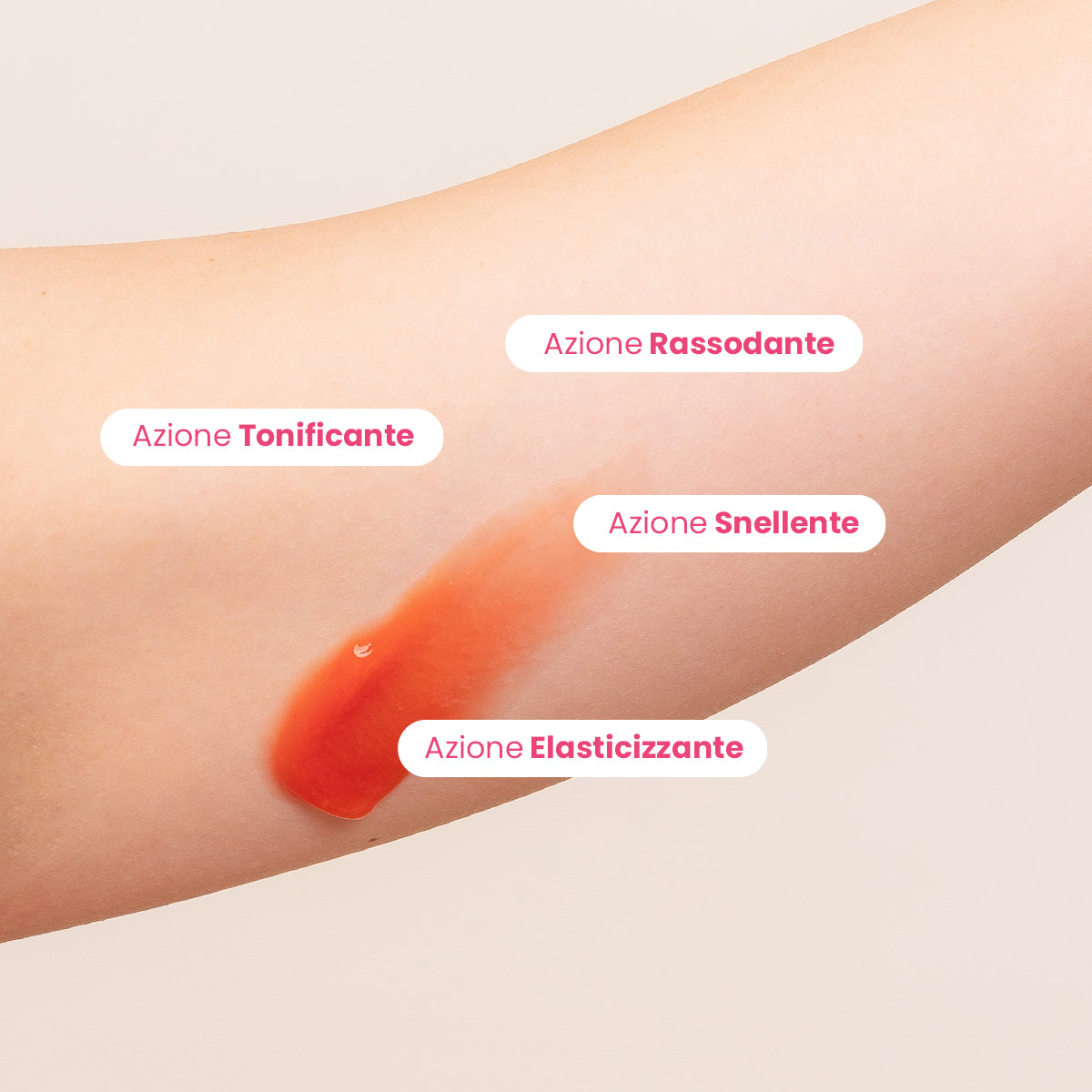 Azione Rassodante, grazie alla Caffeina, stimola la circolazione, rassoda la pelle e aiuta a contrastare la ritenzione idrica e gli inestetismi cutanei.